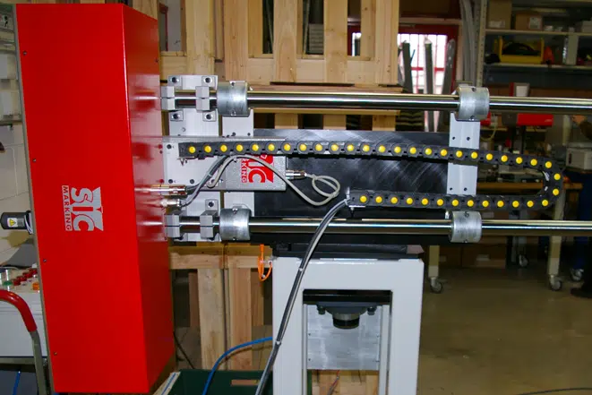 This vertical dot peen marking machine is equipped with: