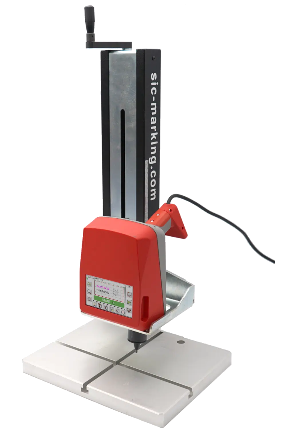 Thanks to its dot peen technology and tungsten carbide stylus, it guarantees durable and permanent marking of your text, logos and 2D datamatrix codes.